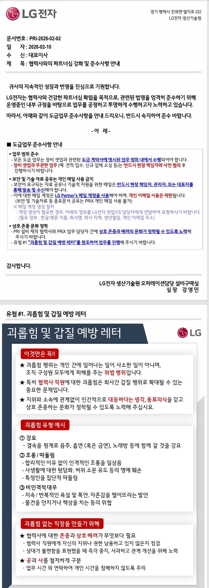 협력사와의 파트너쉽 강화 및 준수 사항 관련 내용을 공지 드립니다.