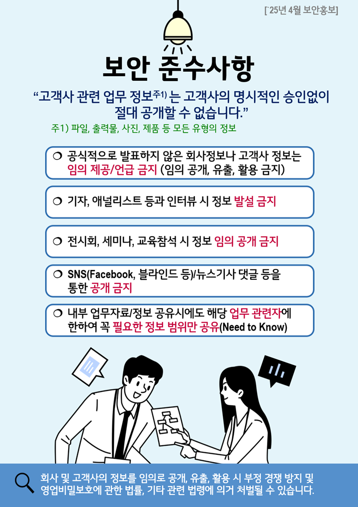 회사 및 고객사의 정보를 임의로 공개, 유출, 활용 시 법적 처벌 대상이 될 수 있습니다.