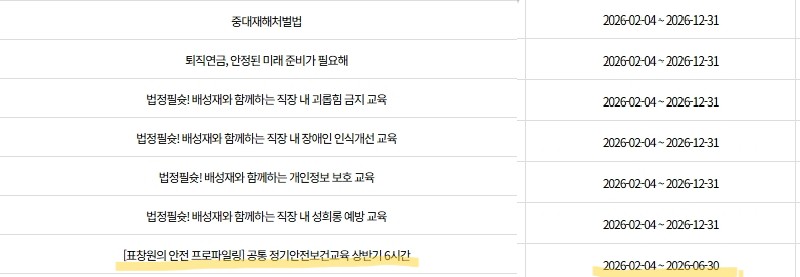 [ 교육 기한 연장 불가능, 대체 교육 없음 !!! 교육기간 必 확인하여 시청 부탁 드립니다. ]